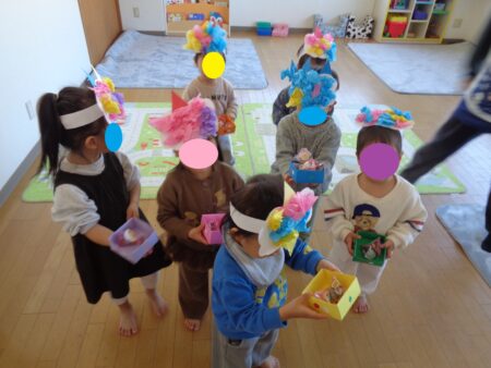当日、みんなで鬼さんに立ち向かうために自ら鬼に変身することに!