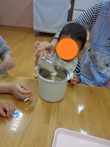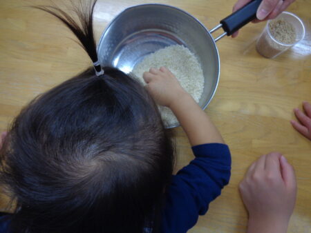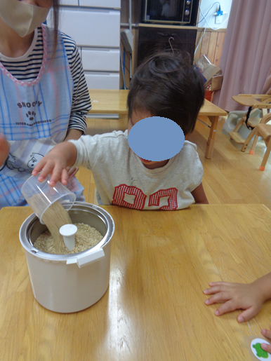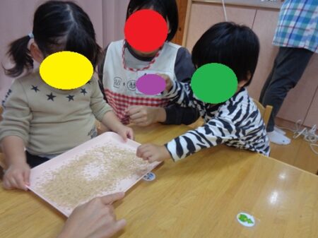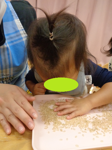 一粒ずつ丁寧にとっているおともだち「じょうずだね~」