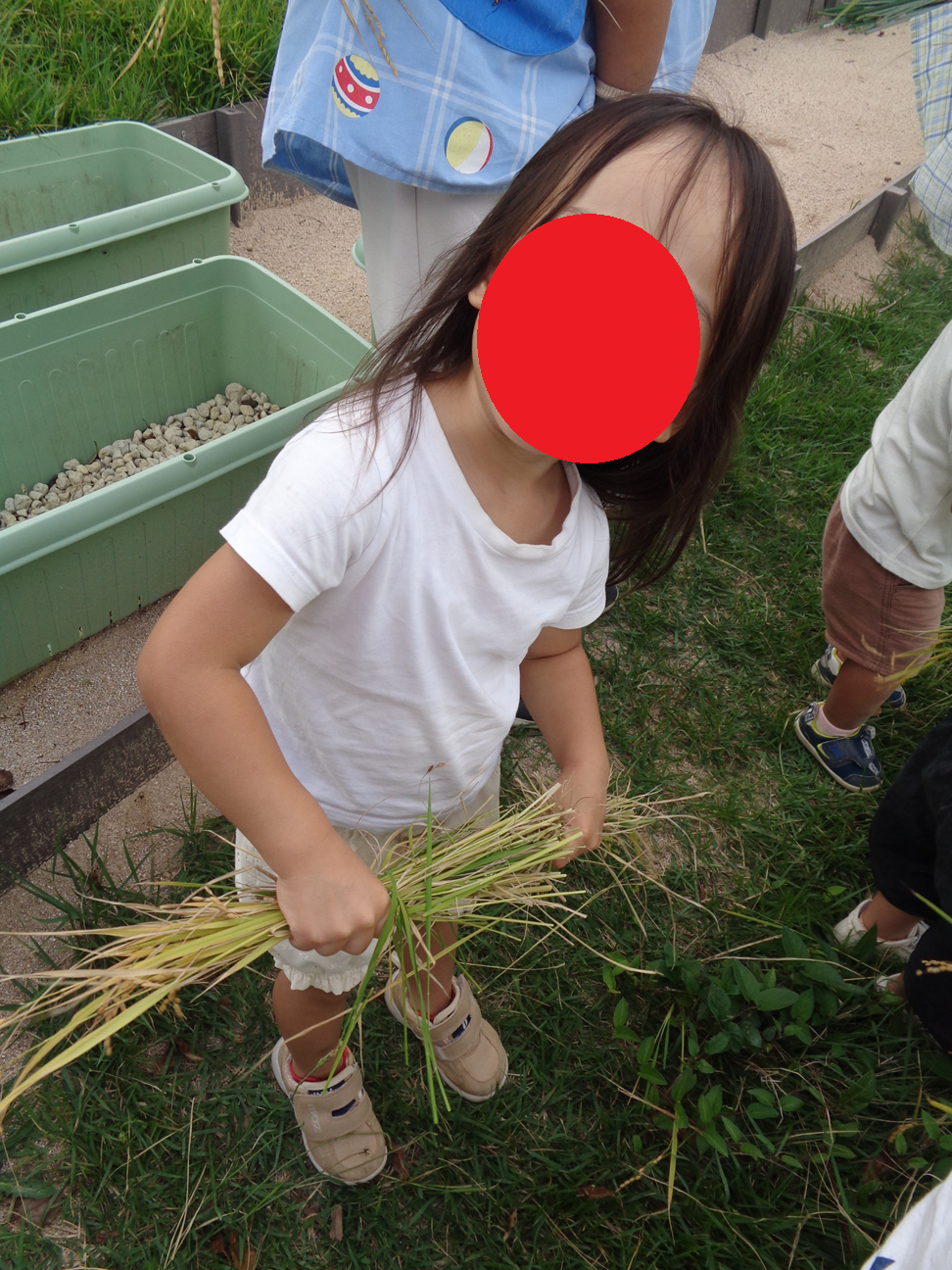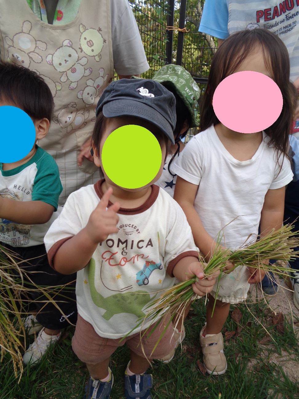 ブログ TOP > ブログ > 初めてのお米の収穫! 初めてのお米の収穫! 今年から院庭の畑で始めたお野菜作り 同時にお米も育てていました(^.^)/~~~ 初めてのお米作りに… 稲穂がつくかと心配していましたが 無事に育ち稲刈りをして収穫できましたー!(^^)! 「みんな これ何か知ってる?」 の問いかけに 子どもたちは 「・・・・・」 「毎日食べているお米だよ」 「・・・・・・」 「ごはんだよ~!」 「・・・・・・・」(^-^; 収穫した稲をしばらく干しておきます おいしいお米がとれるかな おいしいごはんになるの楽しみね! 2025.10.06