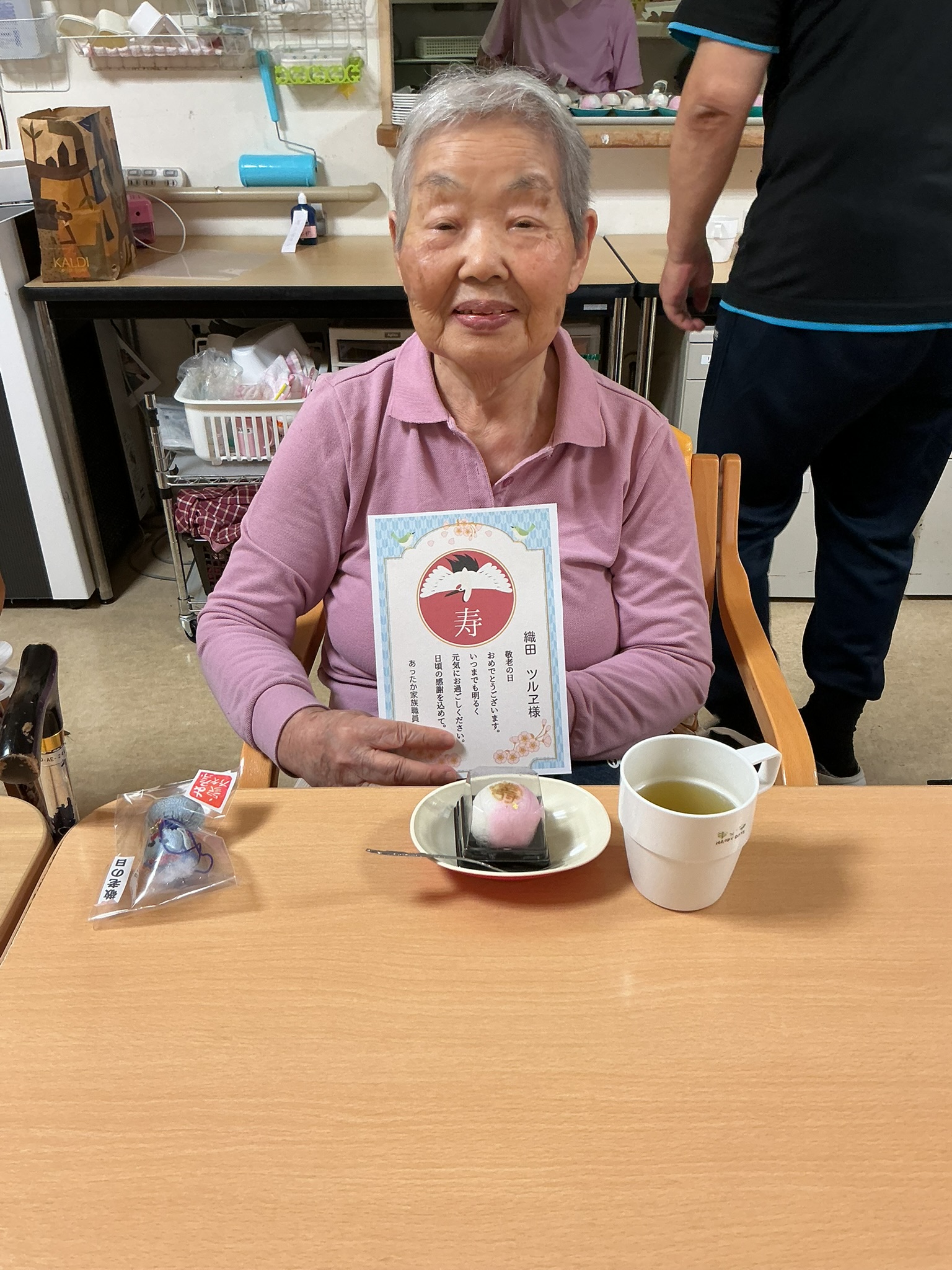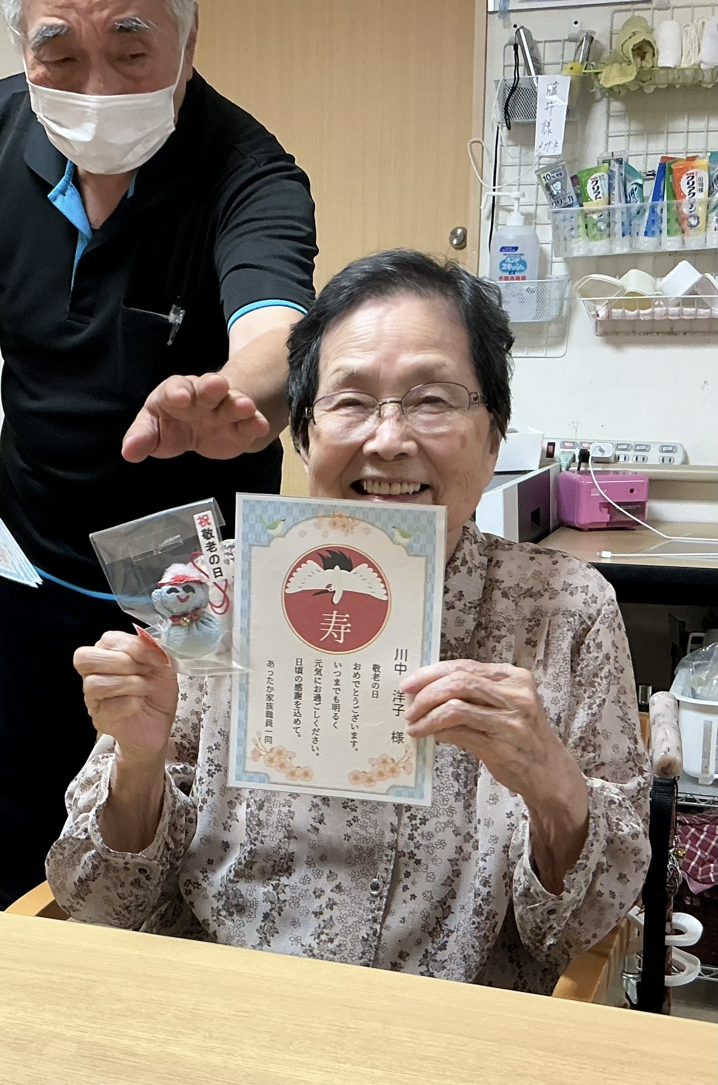 あったか家族 ブログ TOP > あったか家族 ブログ > 🌸敬老の日のプレゼント🌸②(小規模多機能) 🌸敬老の日のプレゼント🌸②(小規模多機能) つづきです✨ 敬老の日のプレゼントを手に取って、みなさん笑顔の撮影会です💕 これからも、あったかい時間をみなさんとご一緒できますように。 つ 2025.10.06