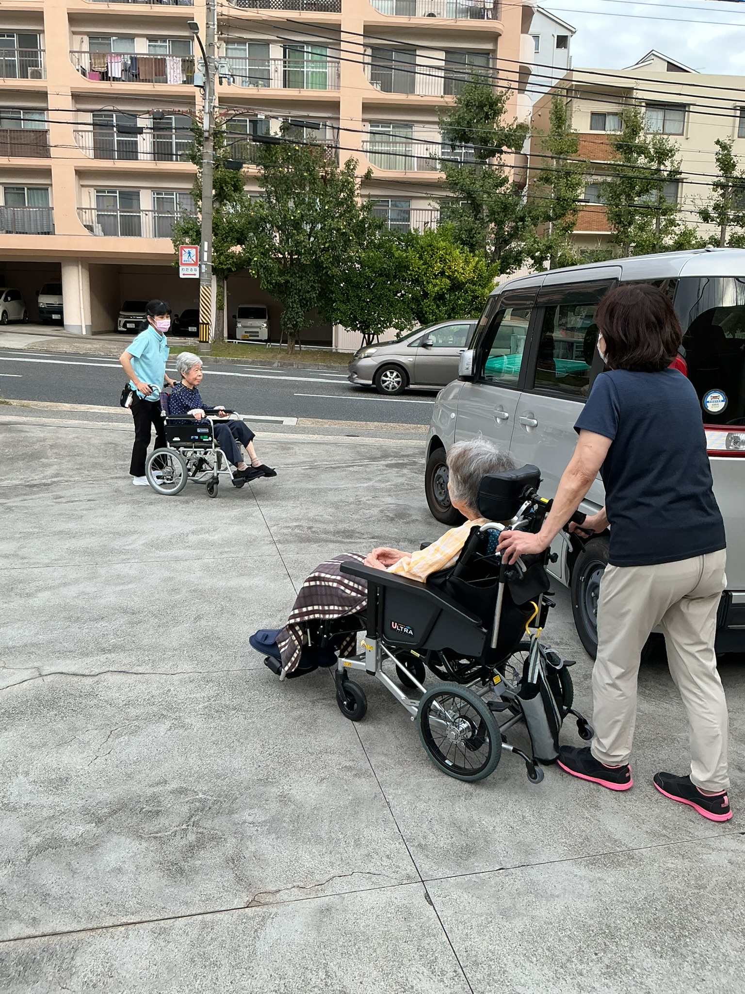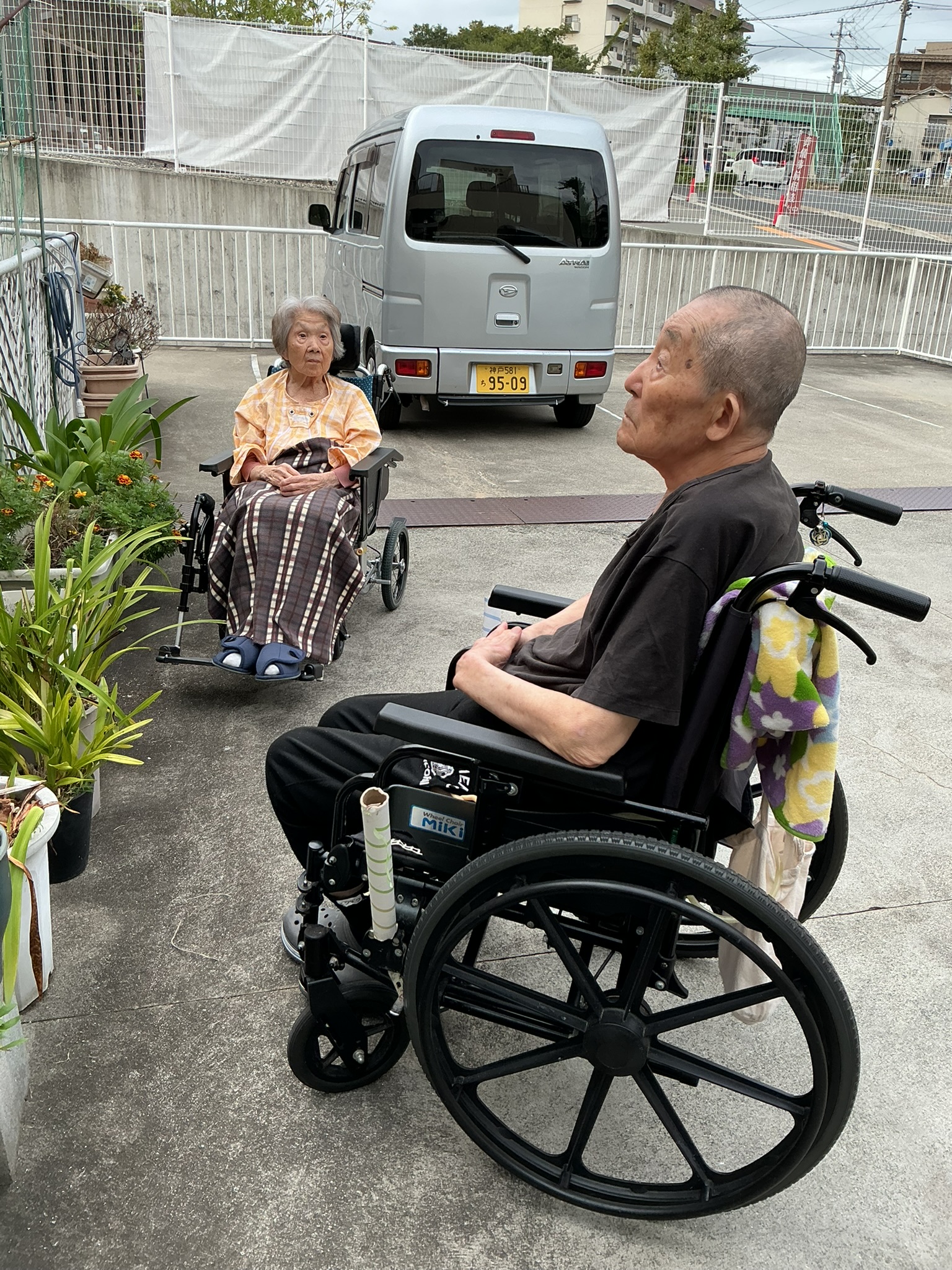 お家に帰られる機会の少ない方も、できるだけ外にでていただけるように、日向ぼっこやお散歩にいきます。