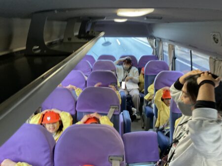 バスの中で歌をうたったり、手遊びを楽しんでいるうち、あっという間に文化ホールに到着です。