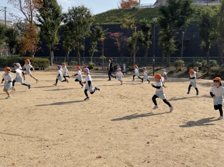広い公園で思いっきり体を動かした後はみんなで“秋”を探しましたよ。
