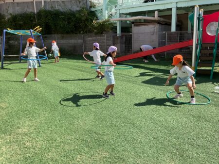 長く回せるお友だちの姿を見ては、一生懸命真似っこ。