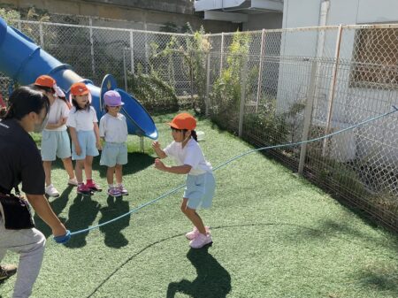 長く連続で飛べるお友だちが縄に引っ掛かってしまった時には、自然と拍手が生まれることも…。
