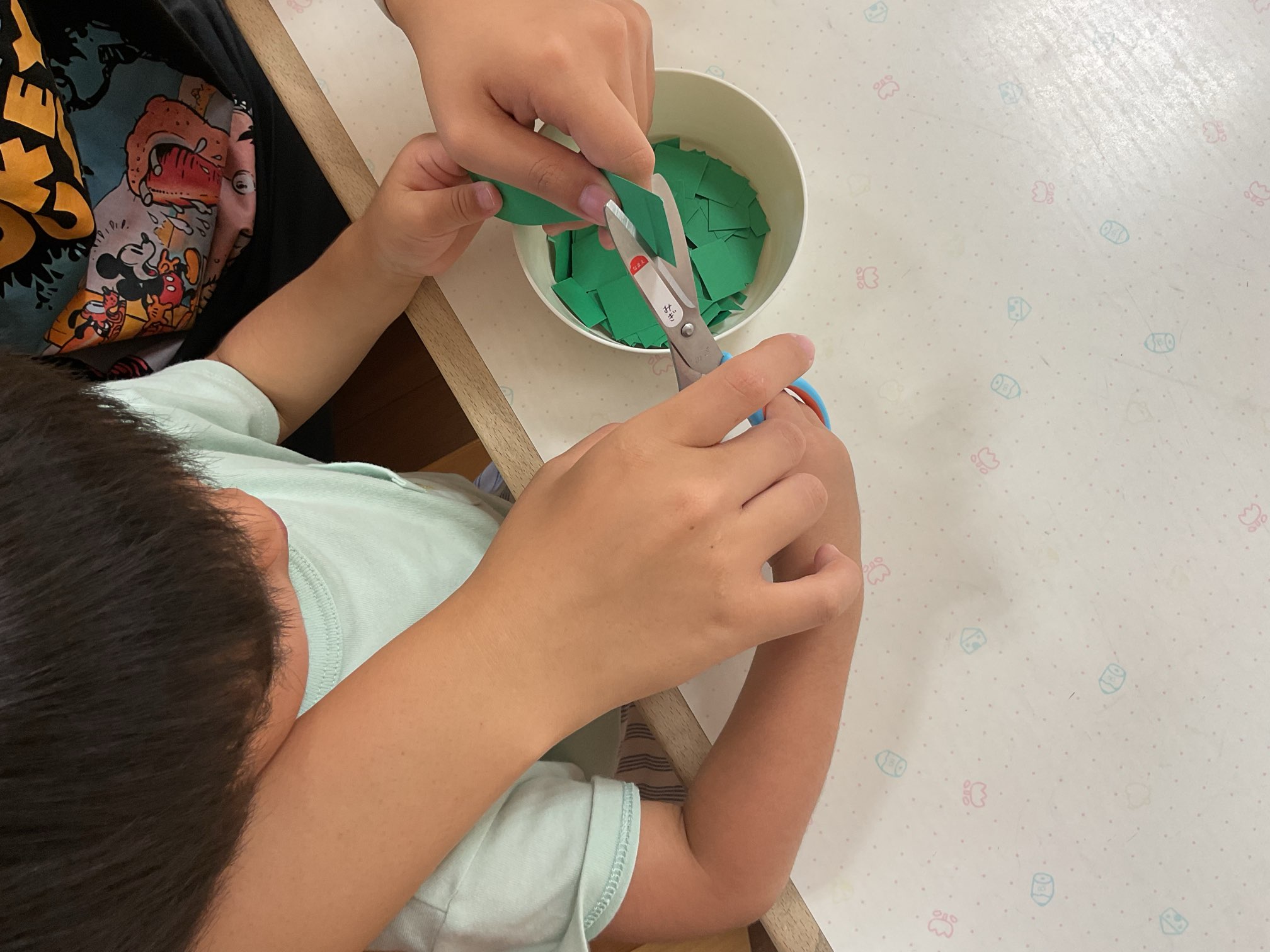 慣れない動きに戸惑う姿も見られましたが、一緒に動かすことで切ることができていました。