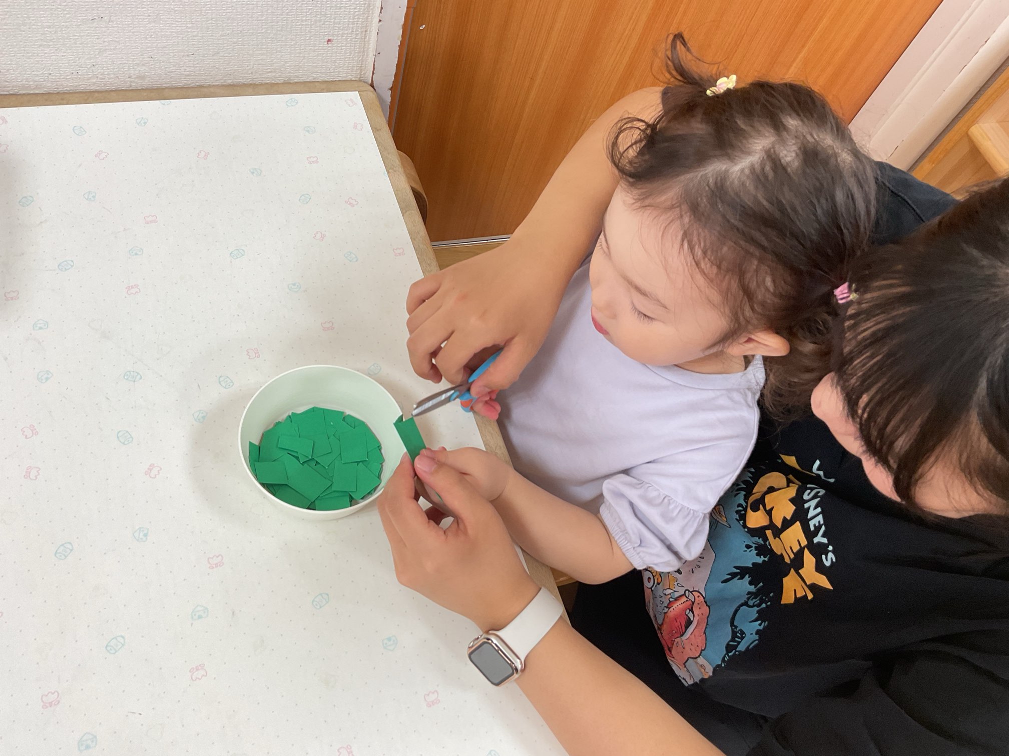 切る感覚がわかると自分で切ってみよう!とはさみを動かす様子も見られました。