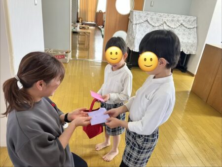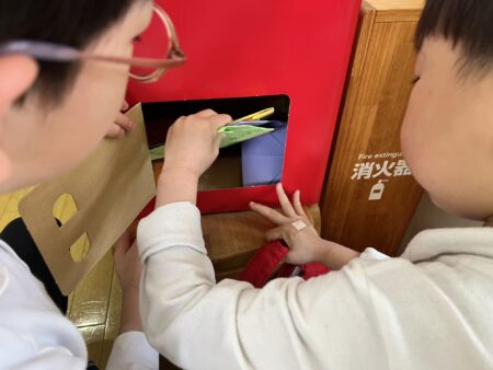 ポストにお手紙がたくさん入っていたので、みんなで話し合って決めた順番で郵便屋さんをします。
