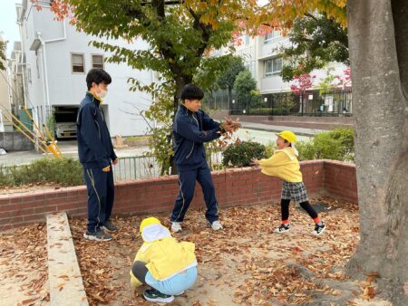 帰る前に校庭で遊ぶ小学生を見て、「早く行ってみたい!」と気持ちをふくらませていました。