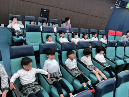 バンドー神戸青少年科学館に着き、まずプラネタリウムを観ました。大きな投影機に興味津々でした。