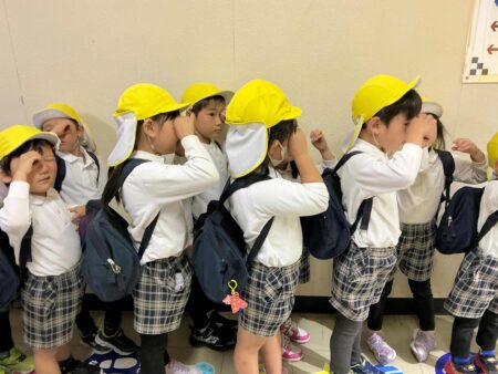 お家の人に作ってもらったおにぎりを持ってバスに乗り、いよいよバンドー神戸青少年科学館へ出発です!