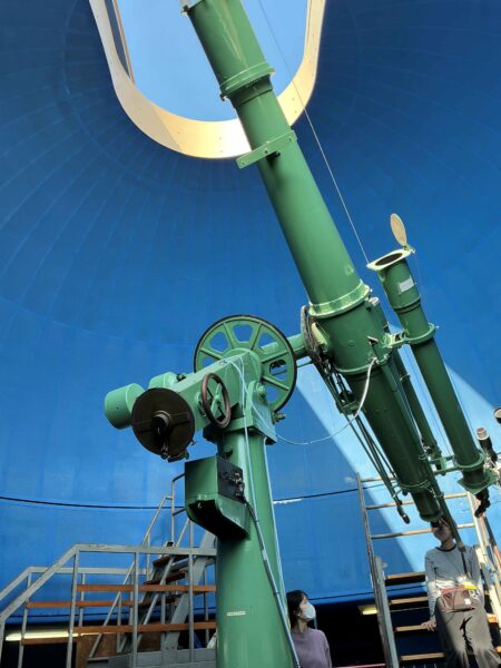 次は、天体観測室で太陽を見ました。イギリスからやってきた大きな望遠鏡に興味津々です。望遠鏡をのぞいてみると「これが太陽?」と不思議そうにしたり、「真っ赤だった!」「黒い点々がある!」とたくさんの発見がありました。