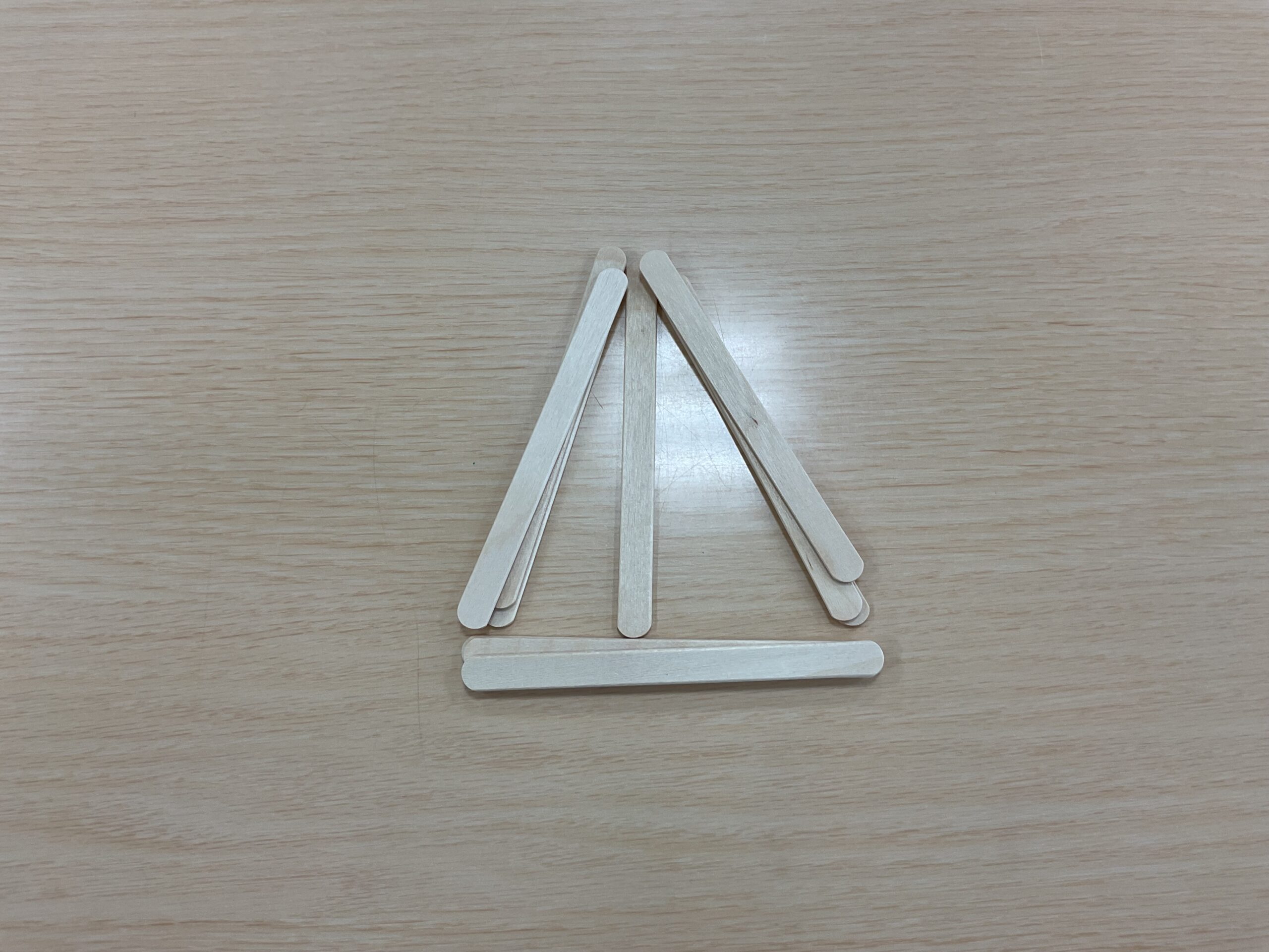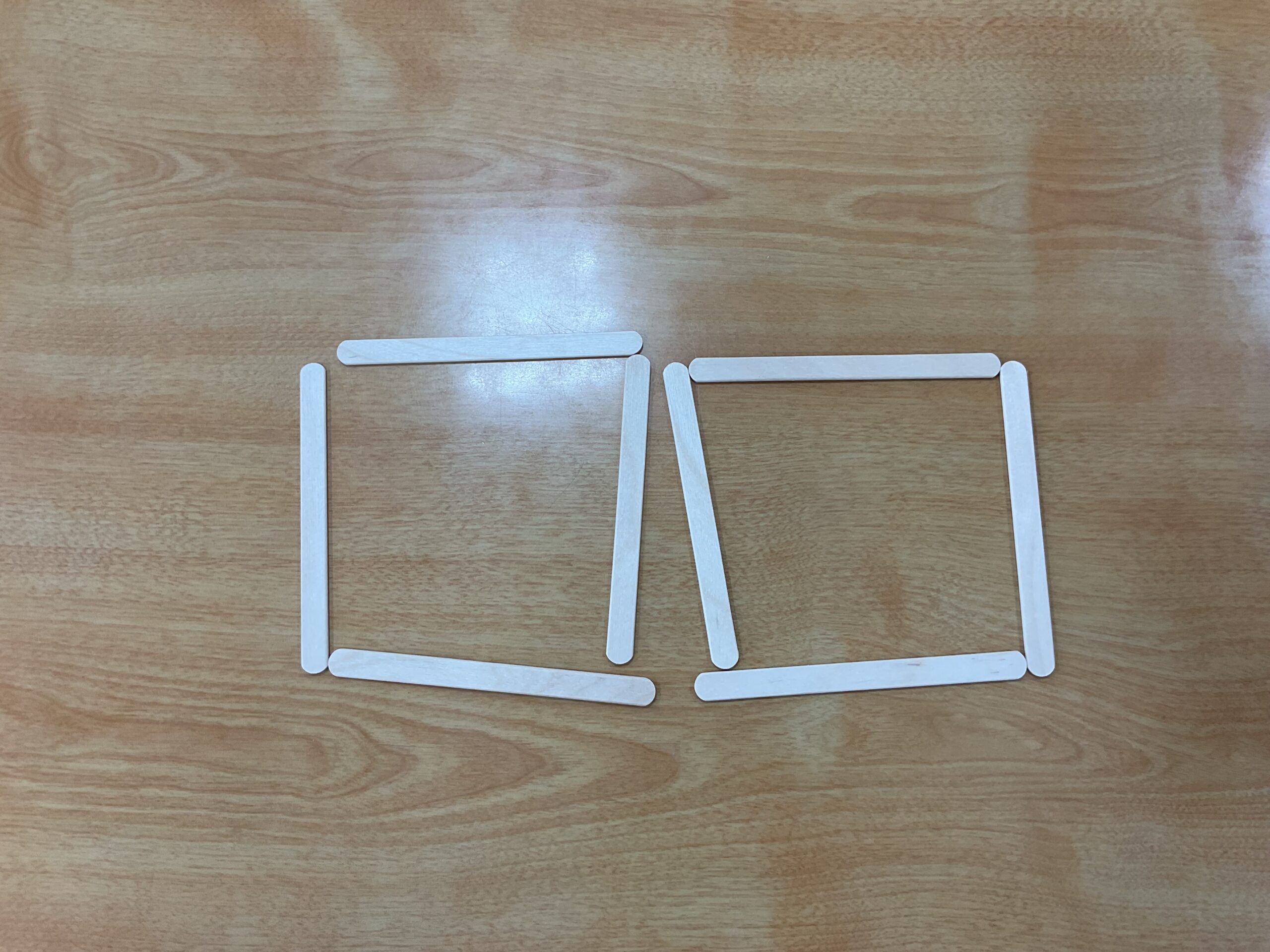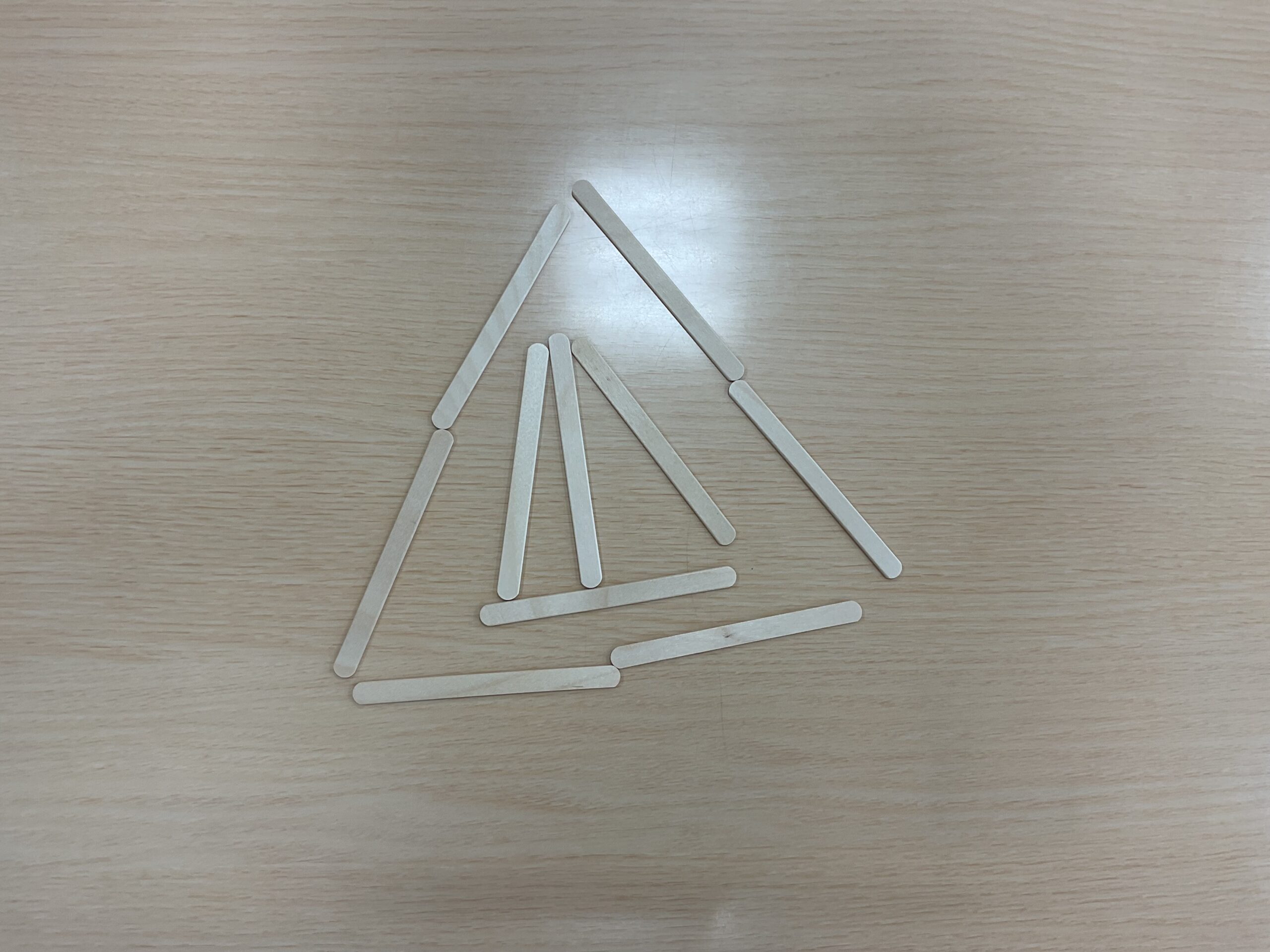 他にも、アイスの棒を使って三角や四角を作りました。