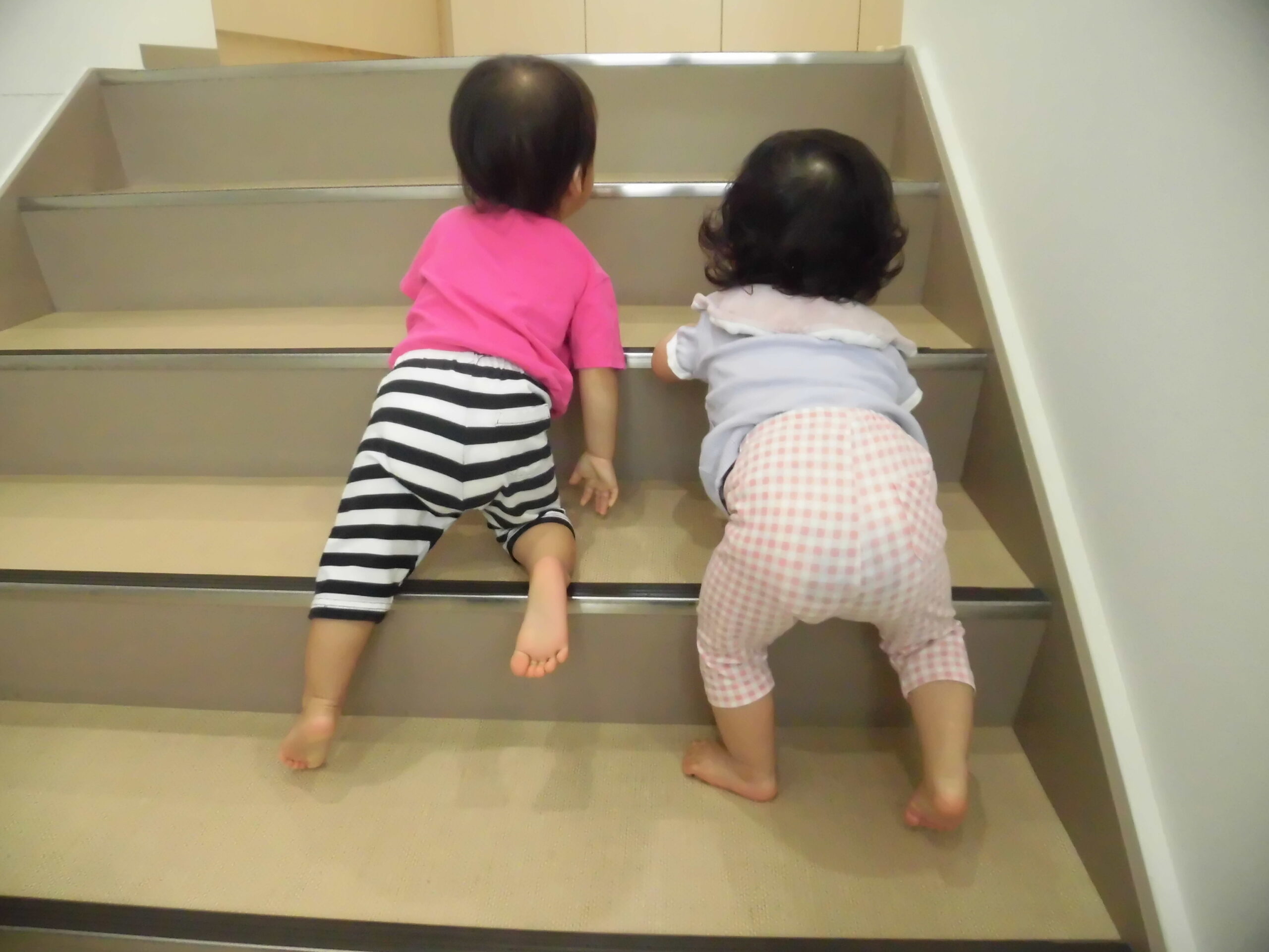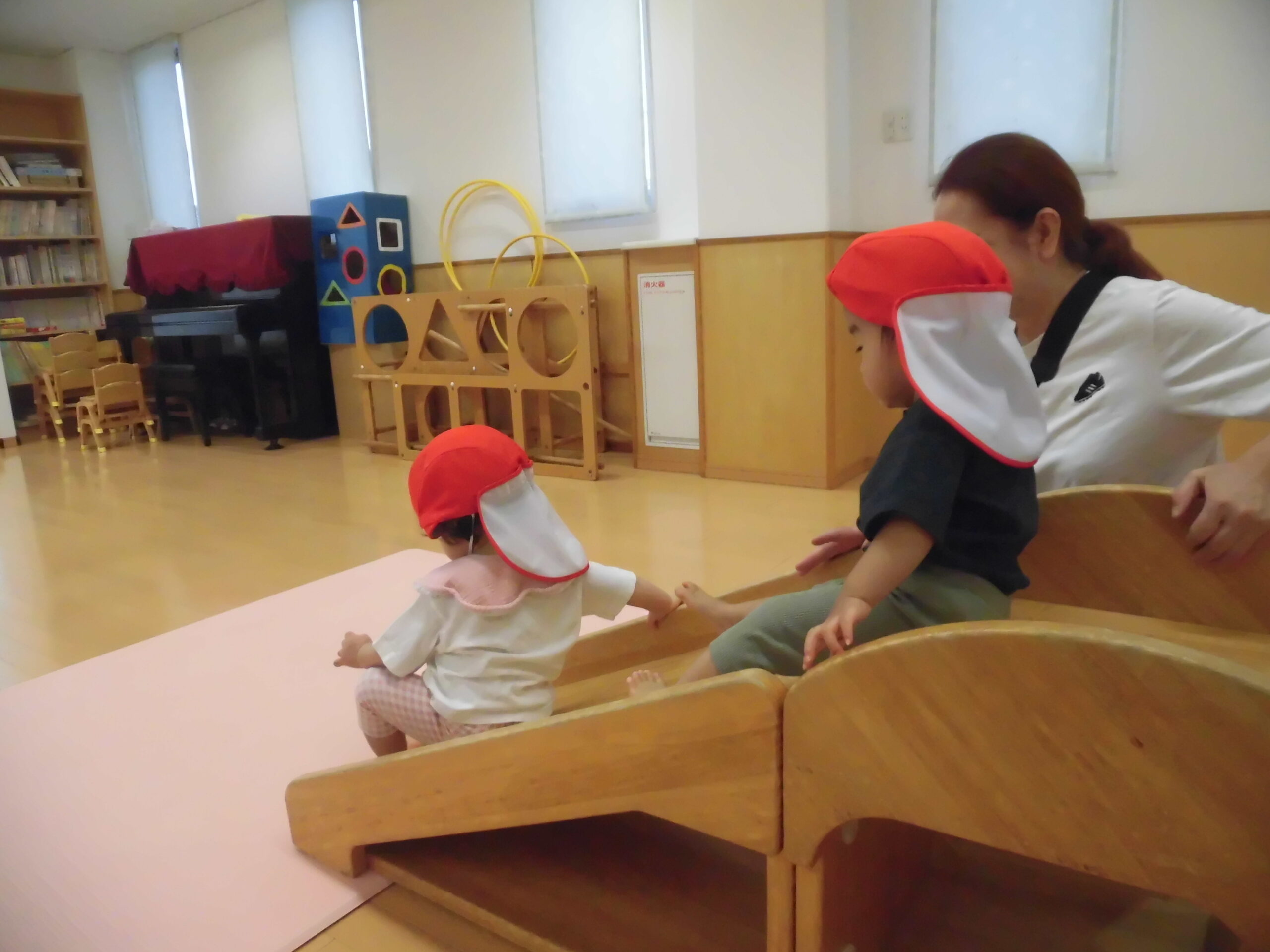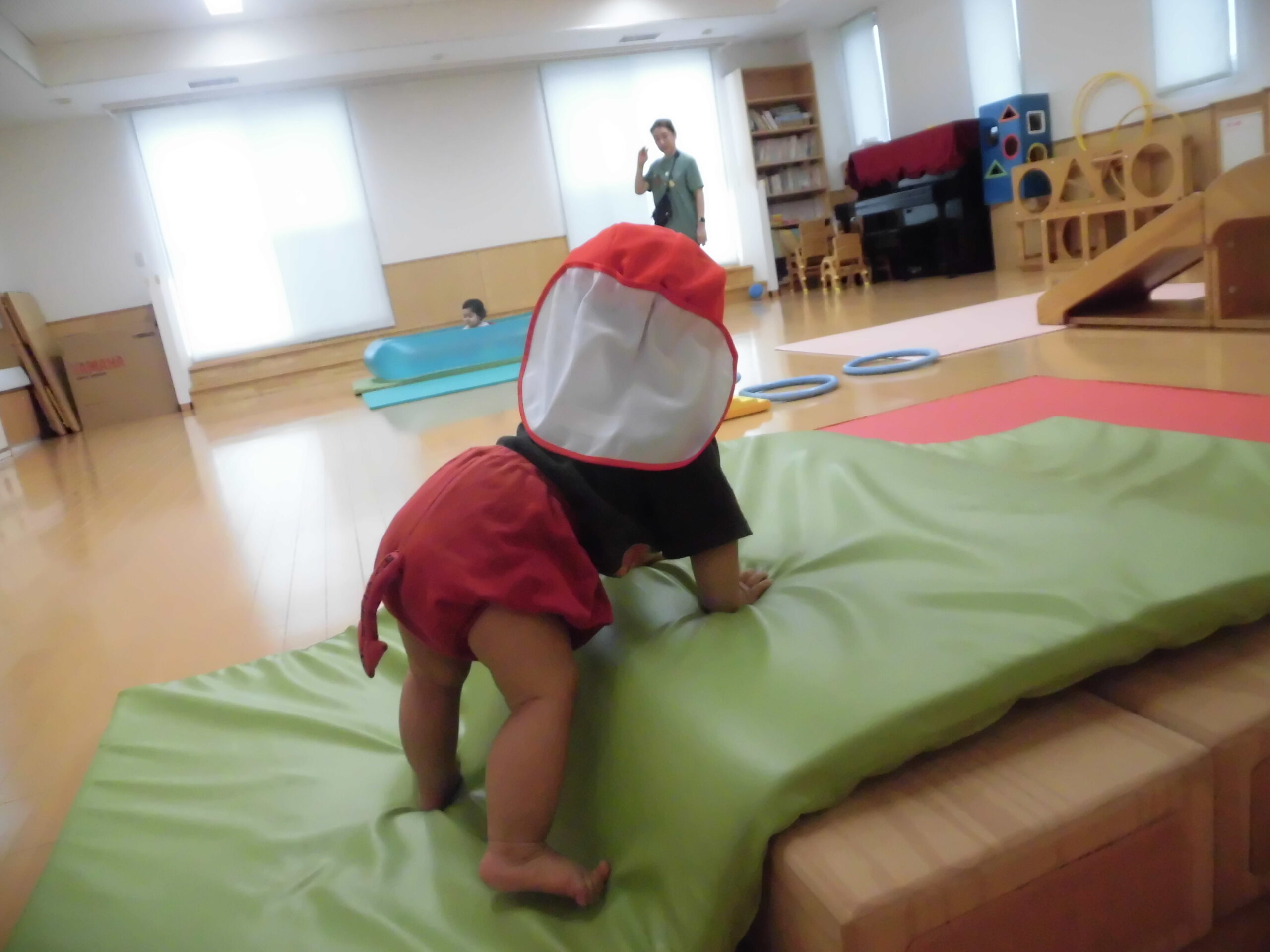 発達に合わせた高さの台にマットをおいて、登り降りをしています。