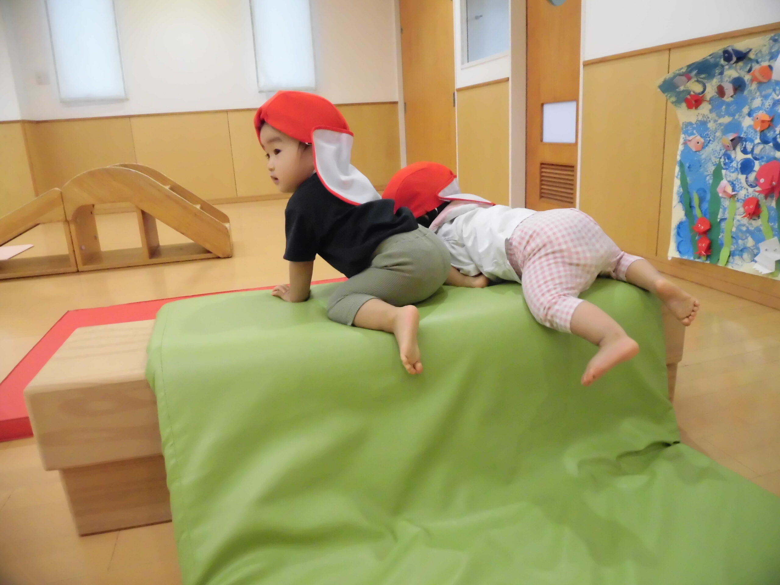 子どもたちの発達に合わせた遊びを工夫しながら、体をしっかり使った粗大運動遊びをたくさんしていきたいと思います。