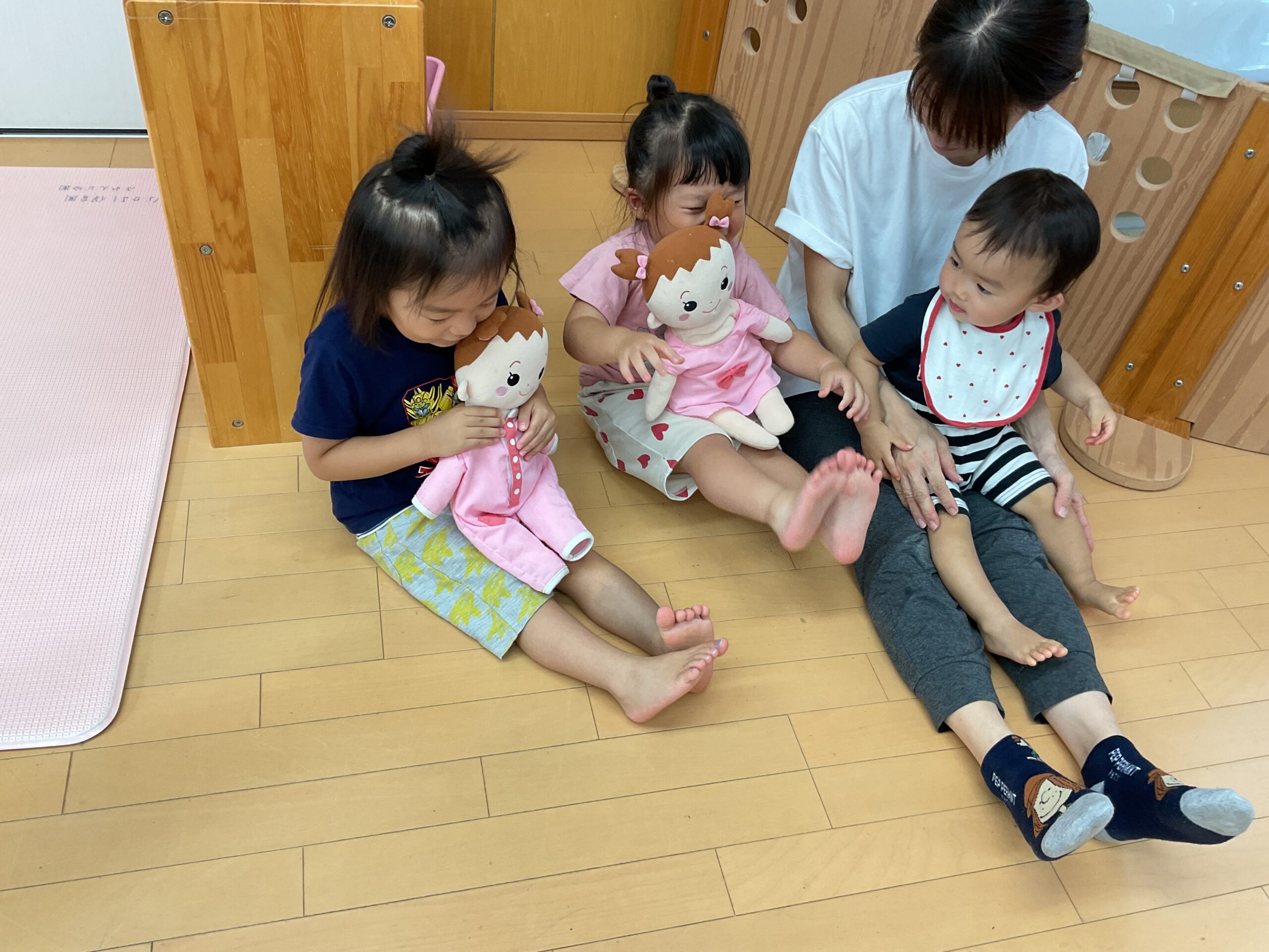 いつもは保育者と一緒にしていますが、最近はひよこ組・りす組のお友だちと一緒にお兄さんお姉さんぶりを発揮したり、小さな先生になりきり人形と一緒にわらべうたをしています。