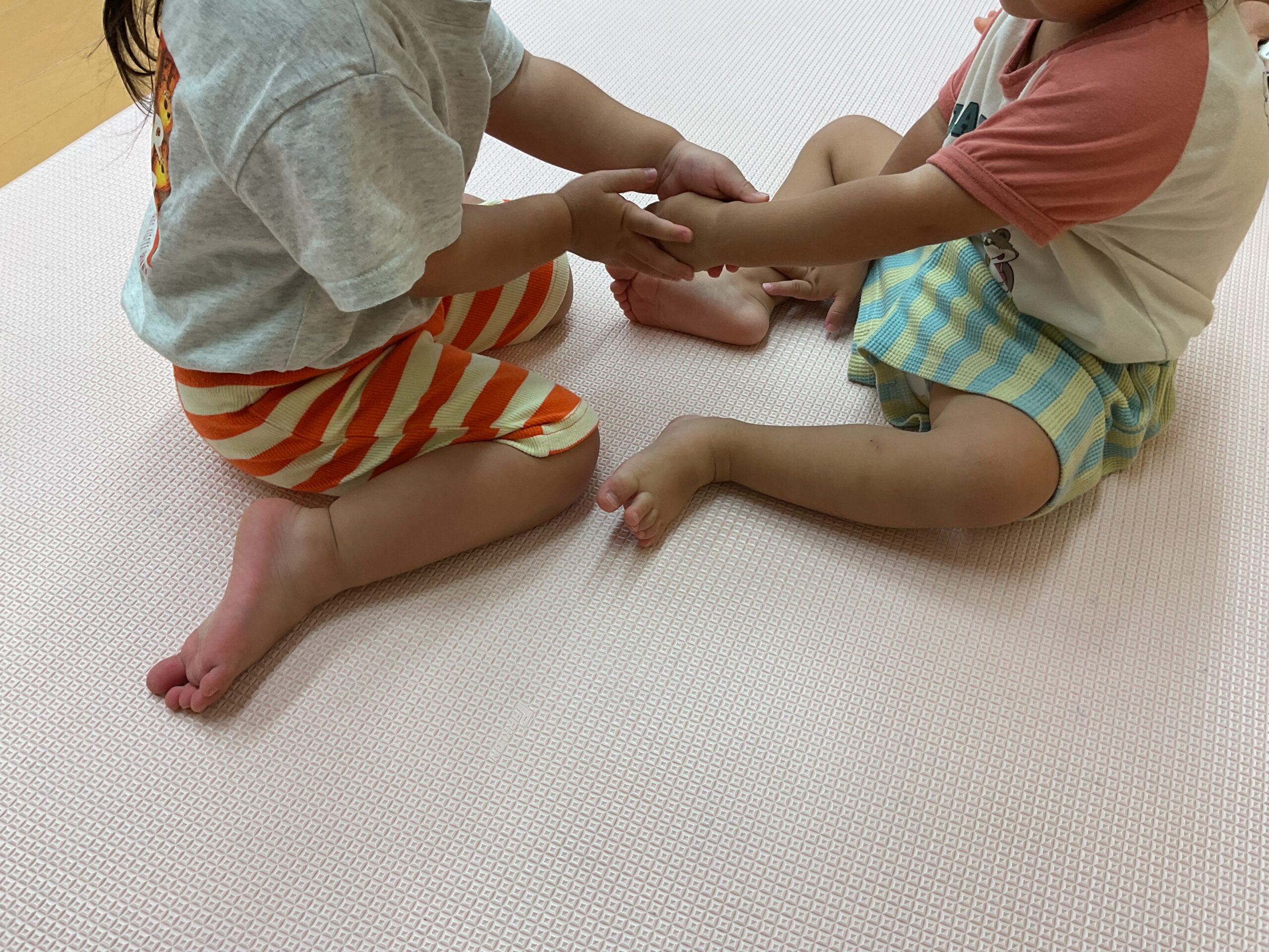 日々の保育の中で、保育者と一緒にわらべうたで触れ合いを楽しんでいます。