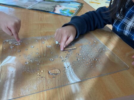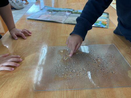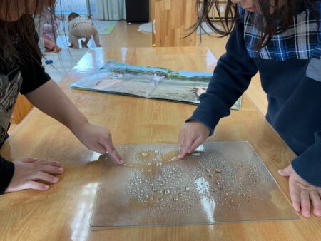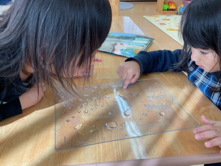 「先生!水がお散歩してる!」動かす指に水がついてきます。