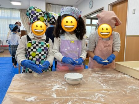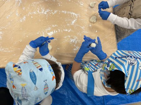 「ちょっと熱いね。」「引っ張ったら伸びる!」「プニプニや!」と楽しそうに丸めていました。