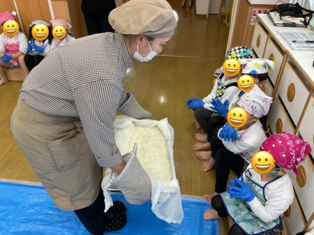 「いつものお米と違うん?」「美味しそうやけど…」と様々な感想が飛び交っていました。