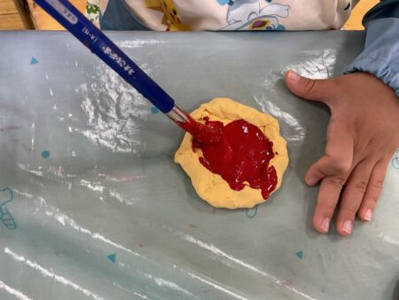 粘土でピザの形を作っていきます。穴が開かないように丁寧に広げていきます。
