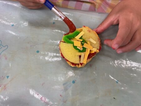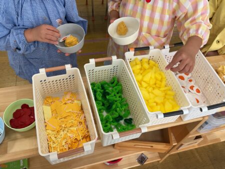 子どもたちのアイディアがたくさん詰まったピザが完成しました!