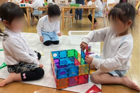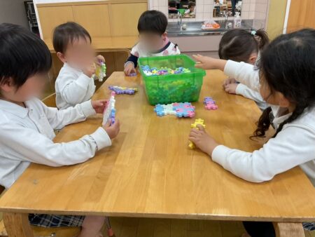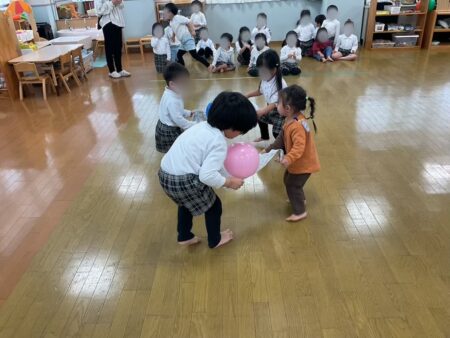 初めての環境に緊張をしている様子でしたが、幼児クラスのお友だちが優しく声をかけ接してくれたので、安心して遊ぶことができました。