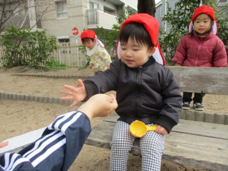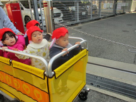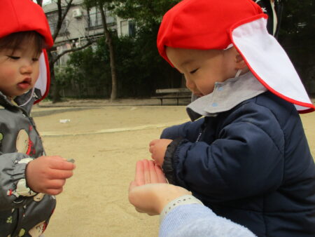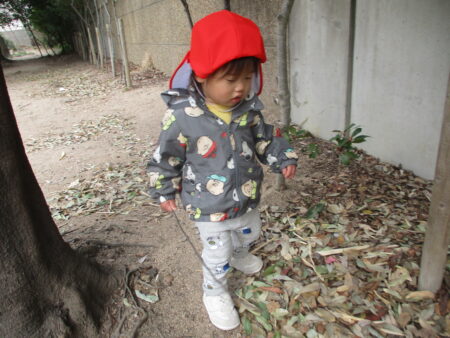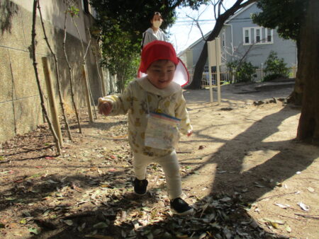 ブログ TOP > ブログ > お散歩に行ったよ。(ひよこぐみ) お散歩に行ったよ。(ひよこぐみ) 春の風が暖かくなってきたので、潮見台公園にお散歩に行きました。 これまでの座るバギーから立って乗るバギーに変わり、新鮮な景色にワクワクしています。 公園に着くと、落ち葉やどんぐりを集めたり「ザグザグ」と音を楽しんだりしています。 ベンチや遊具に座って、いつもより高い目線の景色を楽しんでいます。 「どうぞ」と見つけた自然物をプレゼントしてくれました。 季節や自然を感じながら、のんびりとお散歩時間を楽しみたいです。 2026.03.25
